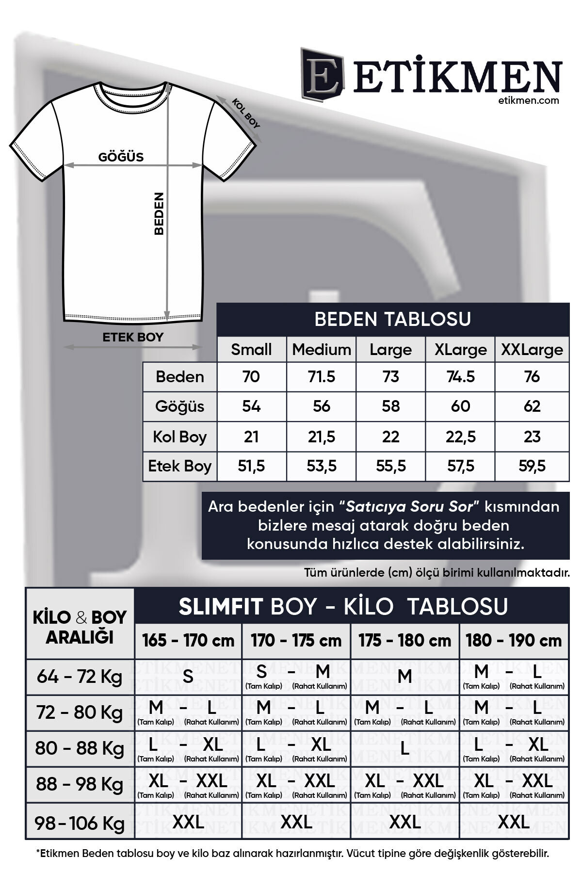 Detaylı ETİKMEN Beden ve Ölçü Tablosu Ürün Görselleri İçerisinde Bulunmaktadır.